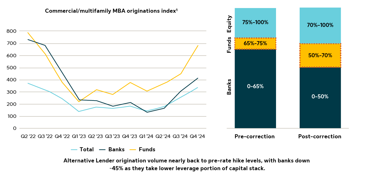 1 Real Estate Capital Europe, MBA Quarterly Survey of Commercial/Multifamily Mortgage Bankers Originations as of 2024.